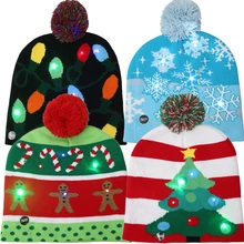 .Gallery for Christmas Unisex Adult Kids LED Hat Beanie Knit Cap Scarf Cosplay Costumes Xmas Gift Christmas Tree Snow Gingerbread Man